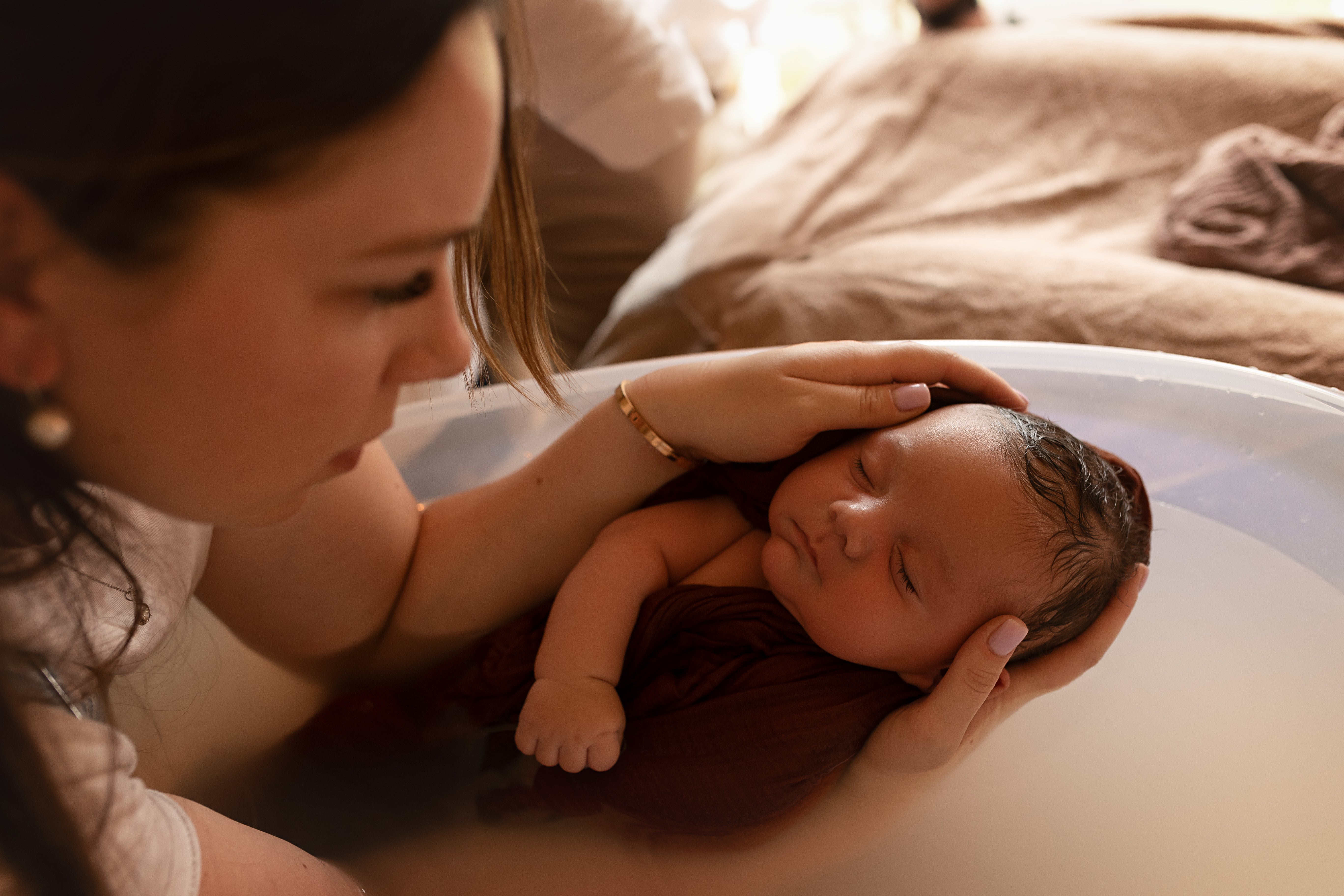 Ce bain est un instant suspendu, pour honorer la naissance, libérer les tensions émotionnelles et renforcer le lien entre bébé et ses parents.